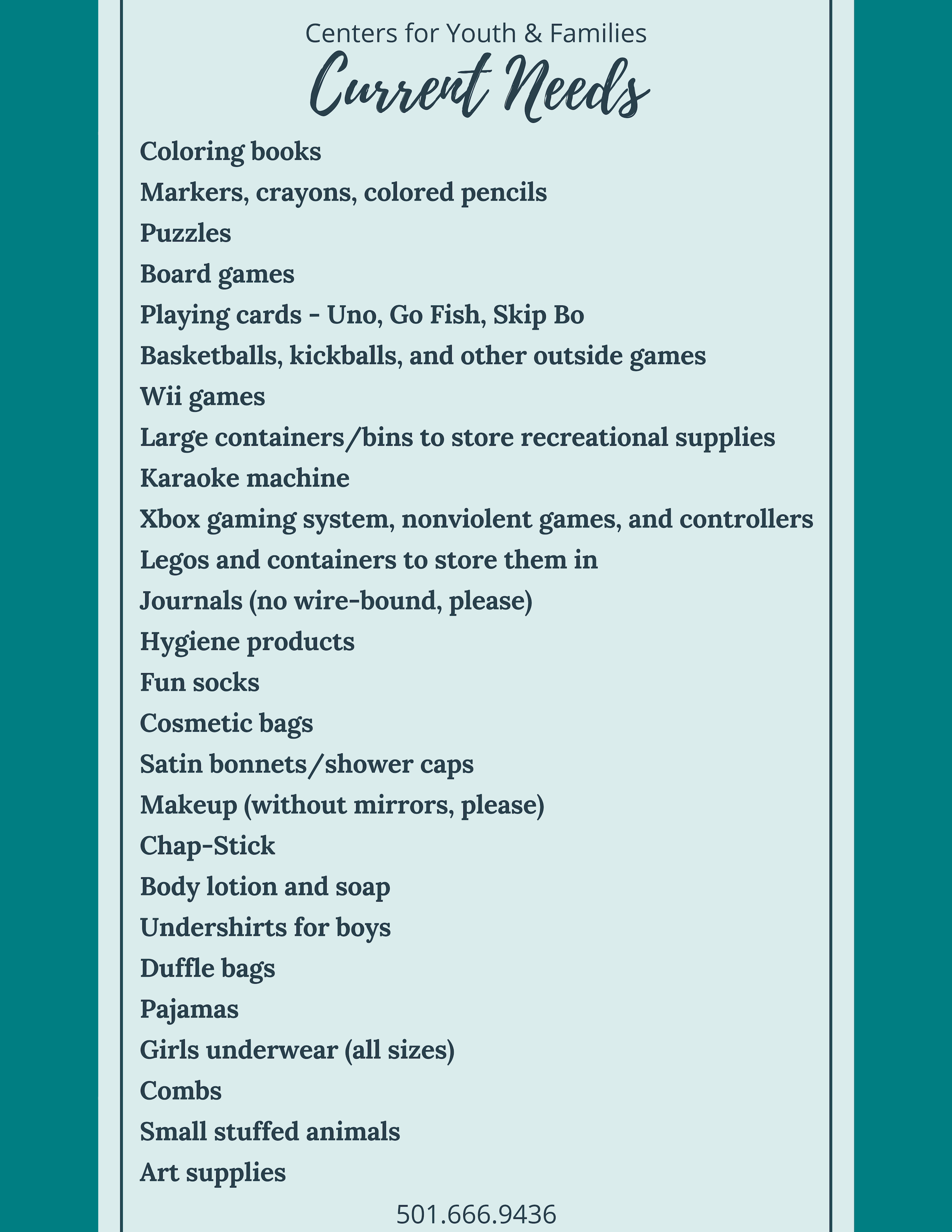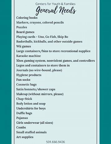 You can also give by calling Centers for Youth and Families Foundation at 501-666-9436 or 888-868-0023 (toll free).